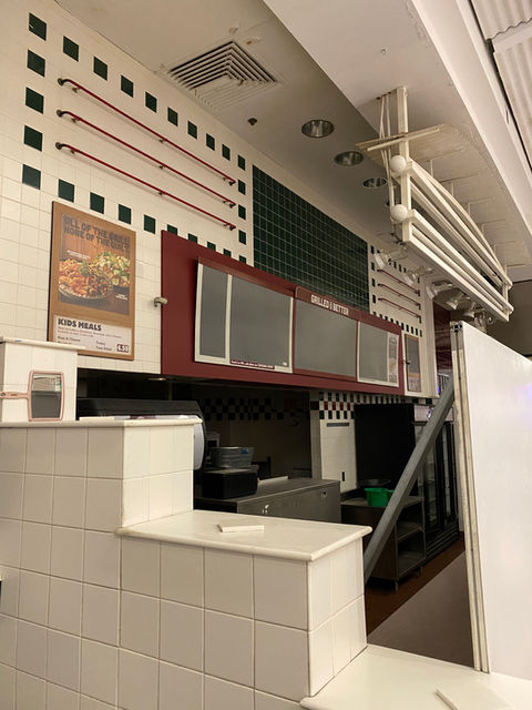 New paint covered the old pink color scheme, and gone were the cobalt-blue wall sconces, neon, giant window sign, and brightly-colored seats.