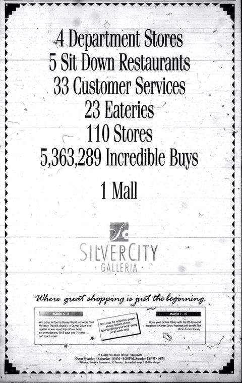 Ground was broken in July of 1990, and the Silver City Galleria was largely complete by February of 1992. At two levels and 1.1 million square feet, the Galleria remains one of the largest malls in New England.